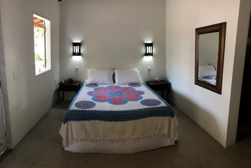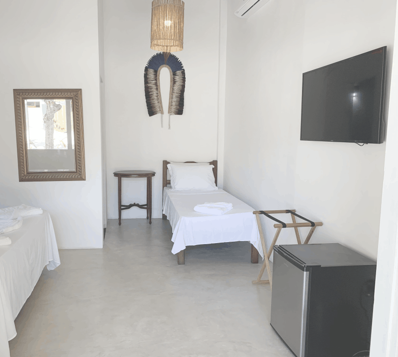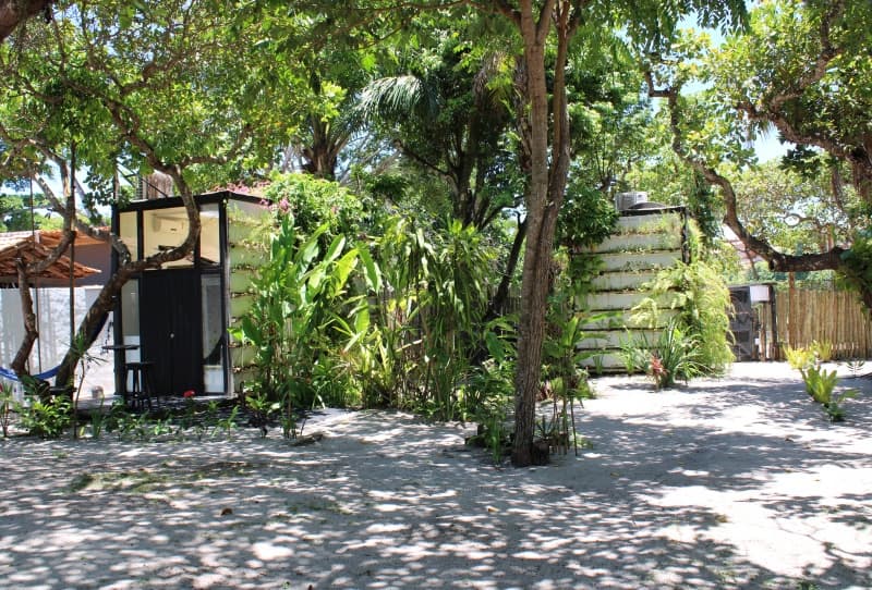 A pousada acompanha a rusticidade e charme de Caraíva, com área externa de areia, quartos muito confortáveis, lindos cajueiros, mangueiras e flores espalhadas pelo jardim. Redes, esteiras, almofadas e o som de passarinhos tornam o ambiente perfeito para relaxar.