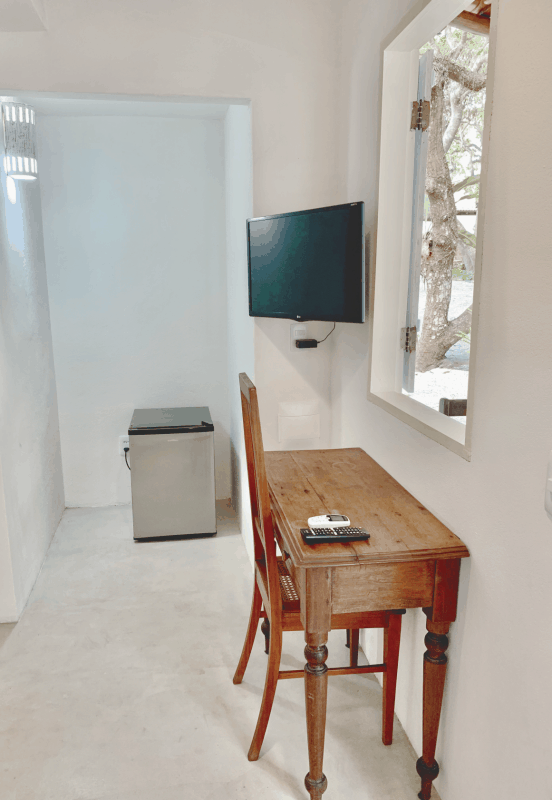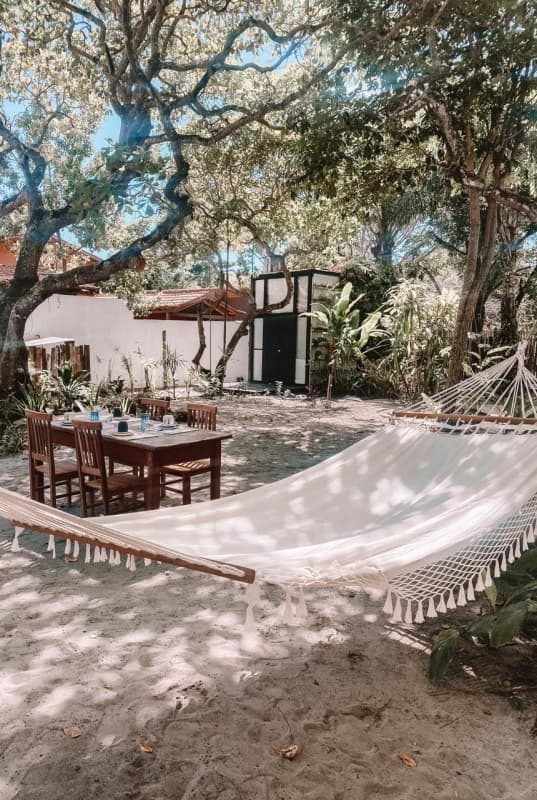A pousada acompanha a rusticidade e charme de Caraíva, com área externa de areia, quartos muito confortáveis, lindos cajueiros, mangueiras e flores espalhadas pelo jardim. Redes, esteiras, almofadas e o som de passarinhos tornam o ambiente perfeito para relaxar.